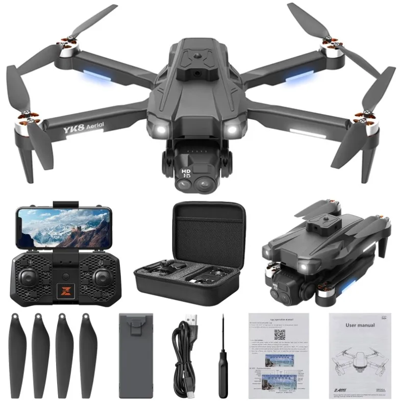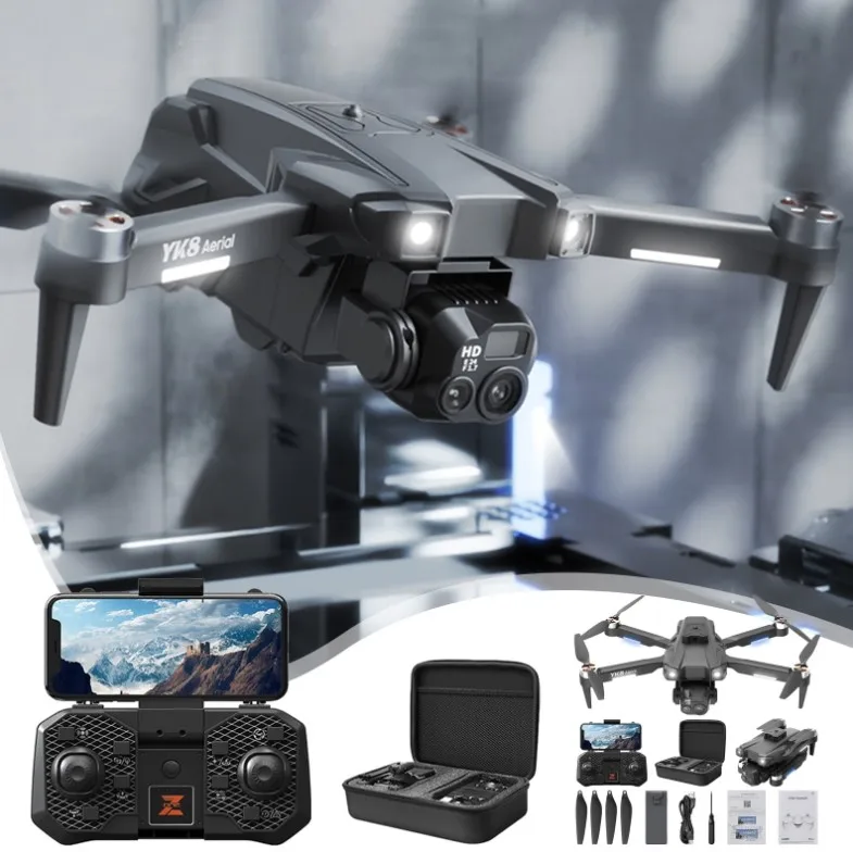 New style hot selling YK8 mini drone dual 4K Camera Obstacle Avoidance wifi fpv foldable Brushless RC Dron Toy